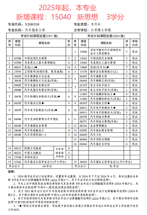 | 10 | 04913 | 汽车电子控制技术(实践) | 3 |