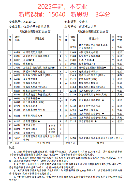 江苏省自考信息管理与信息系统(本科段)专业考试计划(2024版)