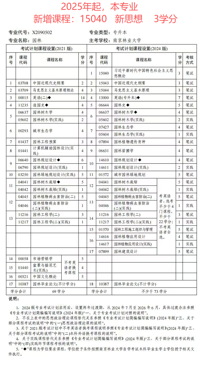 | 12 | 04042 | 园林树木栽培(实践) | 考英语者,选考不少于4门课程,不少于22学分;不考英语者全选。 | 1 |