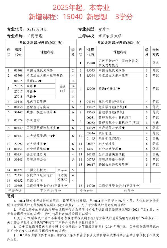 专业代号:X2120201K 主考学校:南京农业大学