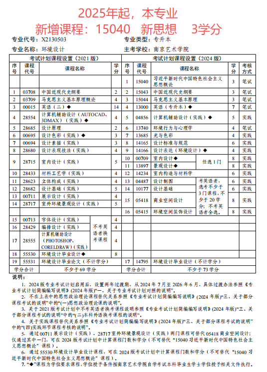 江苏省自考环境设计(本科段)专业考试计划(2024版)