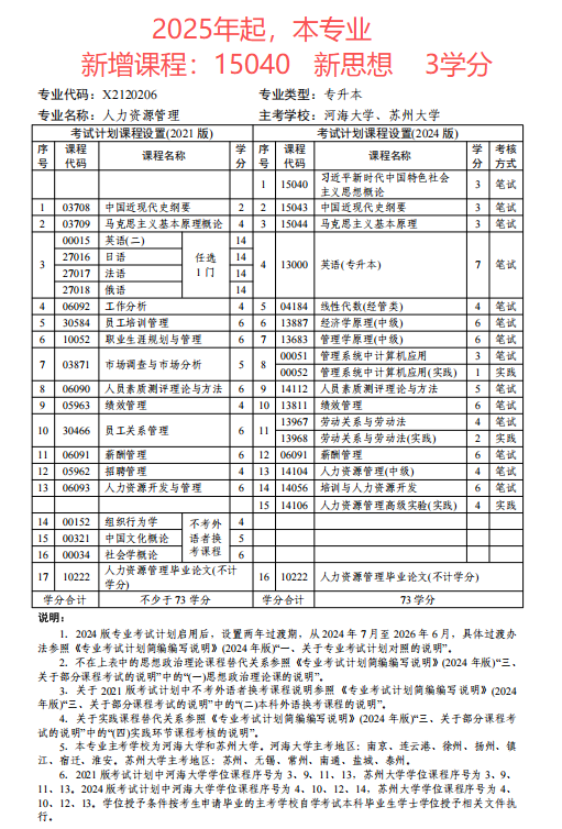 | 13 | 14104 | 人力资源管理(中级)♦(苏大学位课) | 4 |