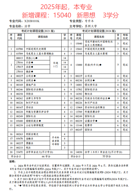 江苏自考法学(本科段)专业考试计划(2024版)