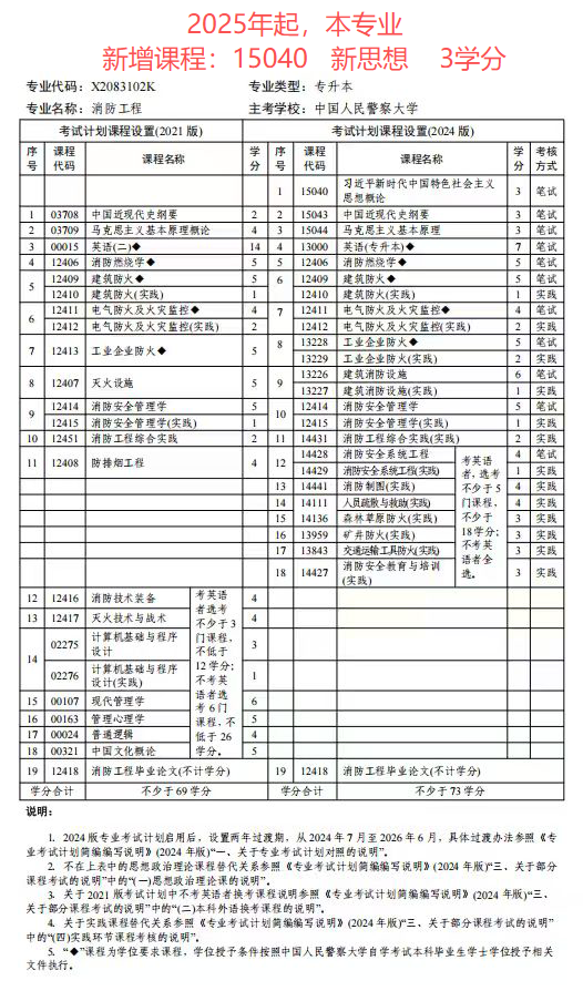 江苏省自考消防工程(本科段)专业考试计划(2024版)
