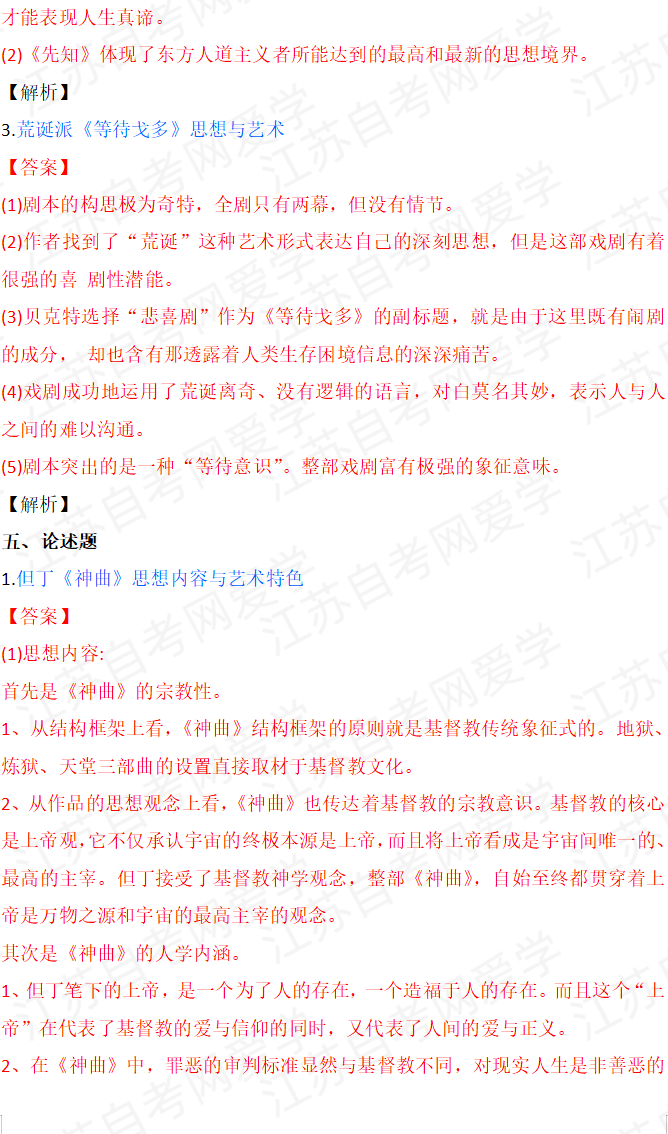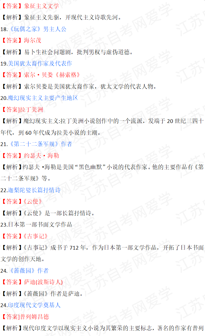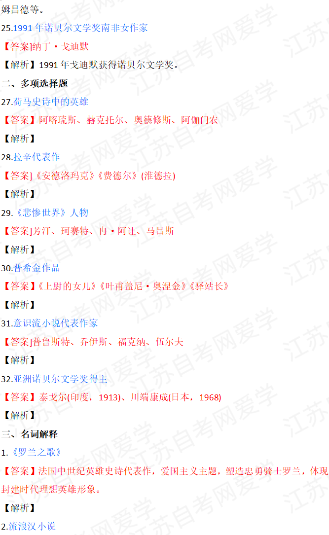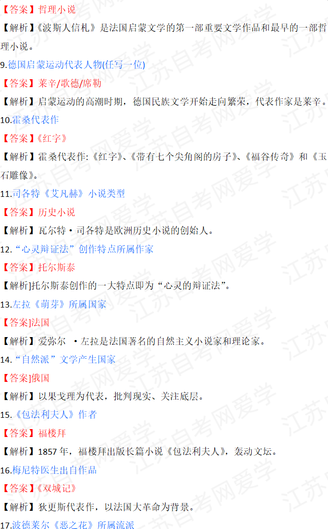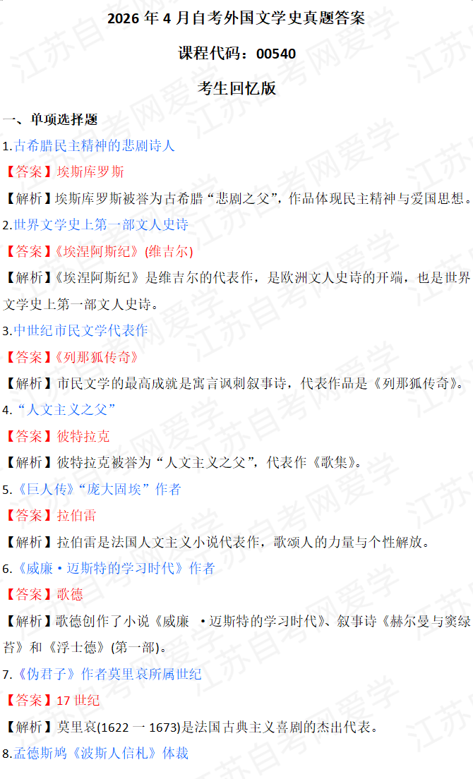 - 2026年4月自考外国文学史00540真题答... 04-15