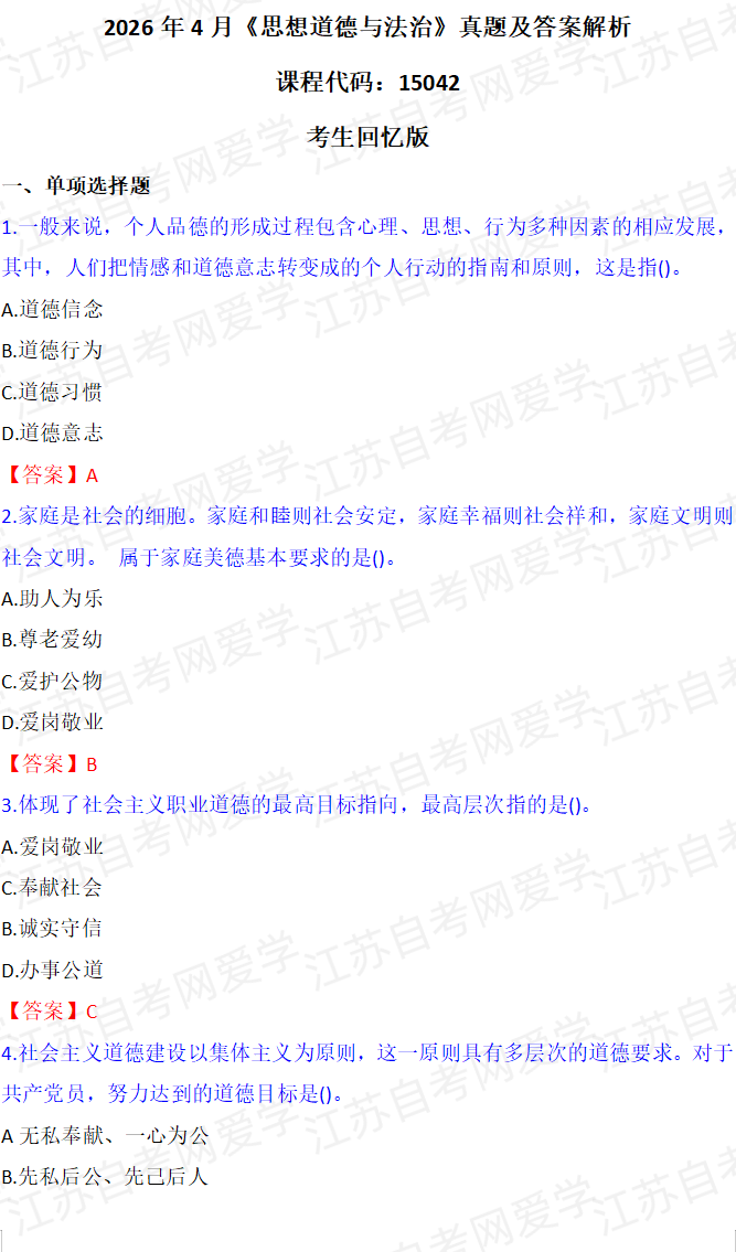 - 2026年4月自考毛概真题答案(考生回忆版) 04-15