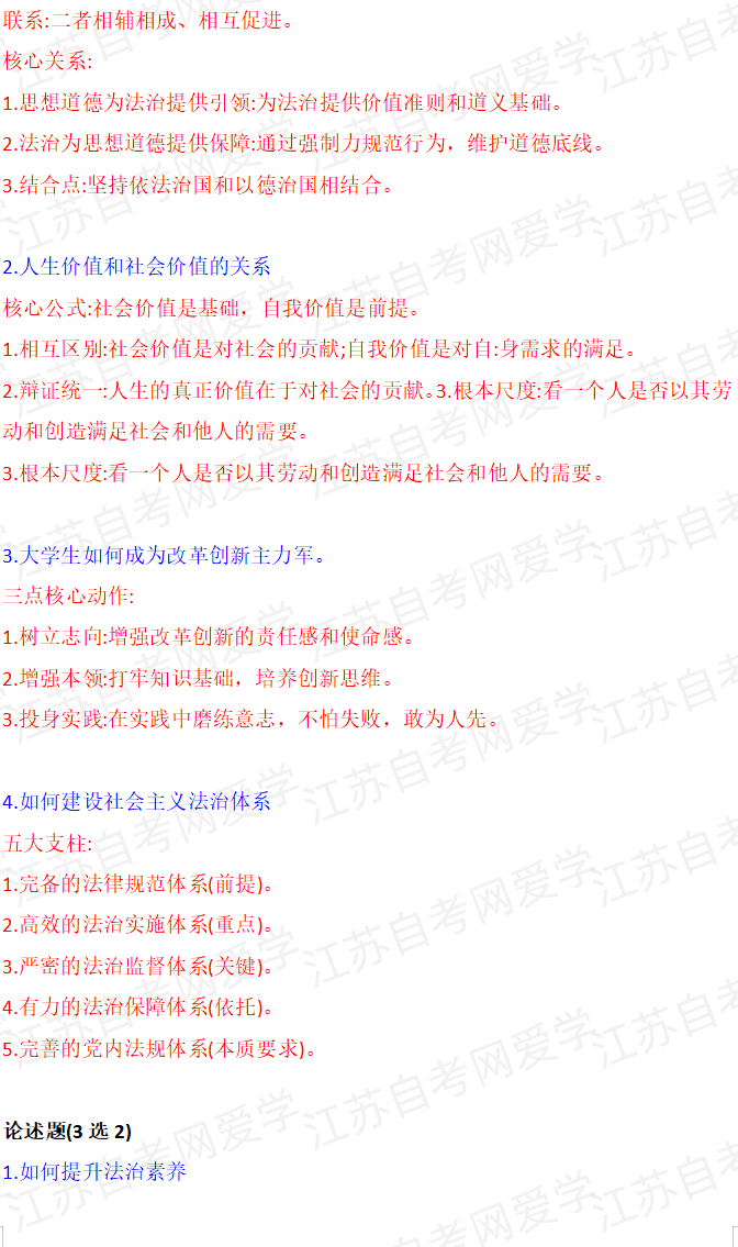 2026年4月自考思想道德与法治15042真题答案(考生回忆版)