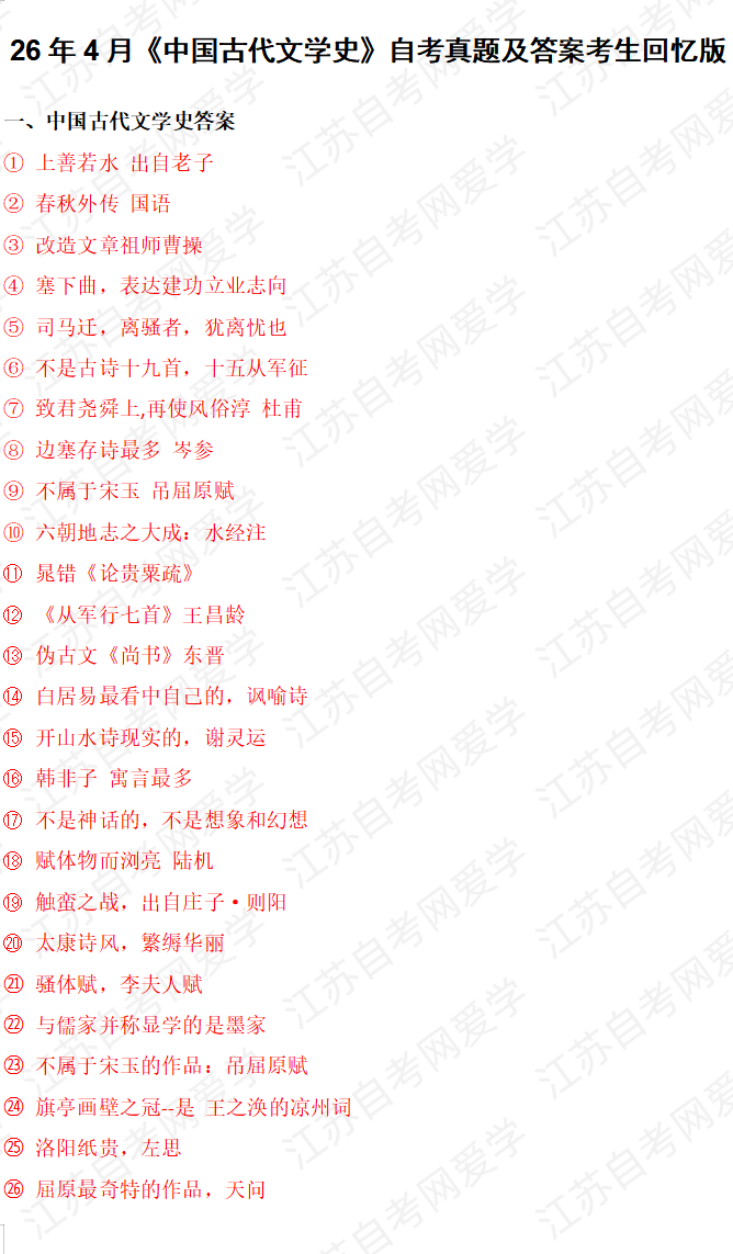 - 2026年4月自考中国古代文学史真题答... 04-15