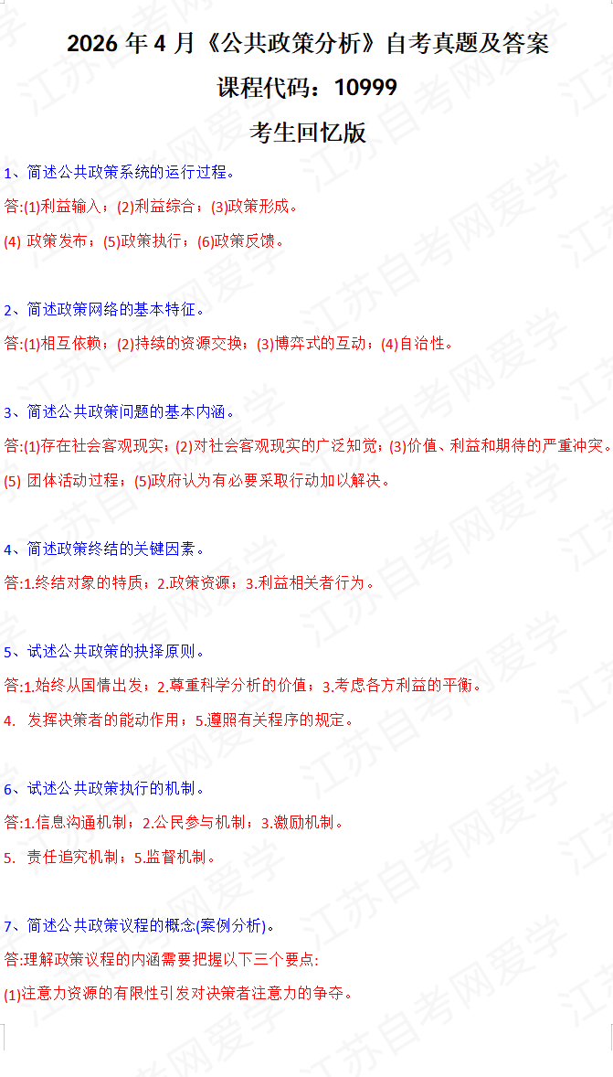 - 2026年4月自考公共政策分析10999真题... 04-15