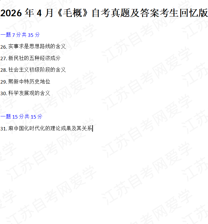 - 2026年4月自考毛概真题答案(考生回忆版) 04-15