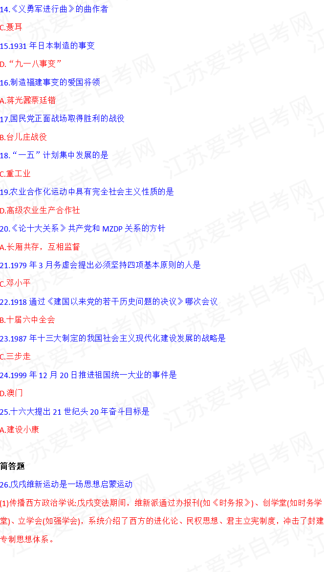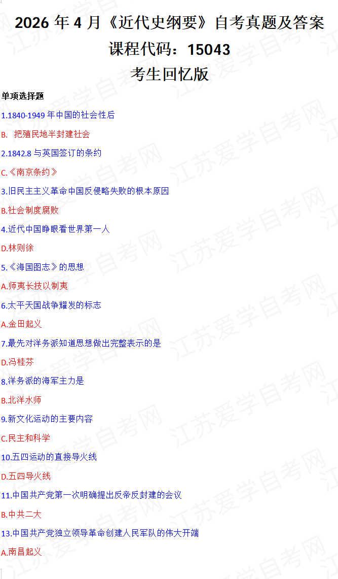 - 2026年4月自考近代史纲要15043真题答... 04-15